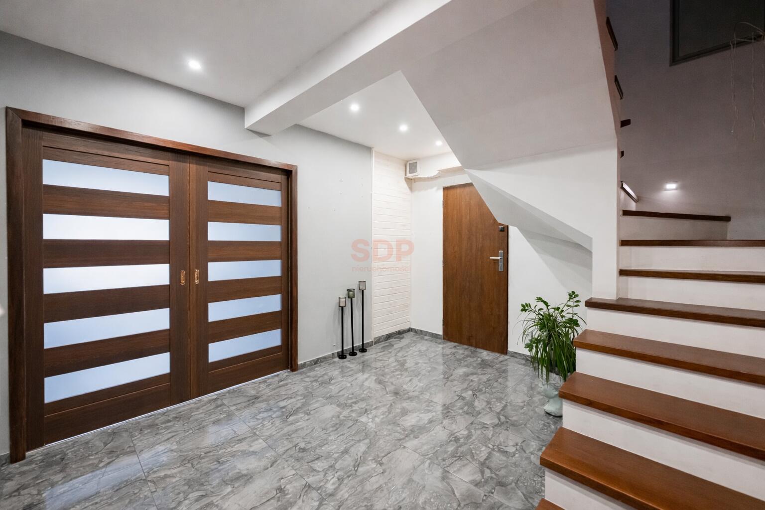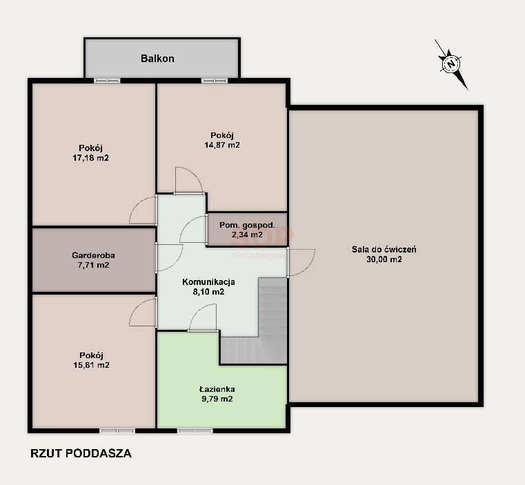 – dodatkowa przestrzeń ok 56 m2 (po podłodze) zaaranżowana pod salę do ćwiczeń, z możliwością łatwej adaptacji na 2 dodatkowe pokoje,