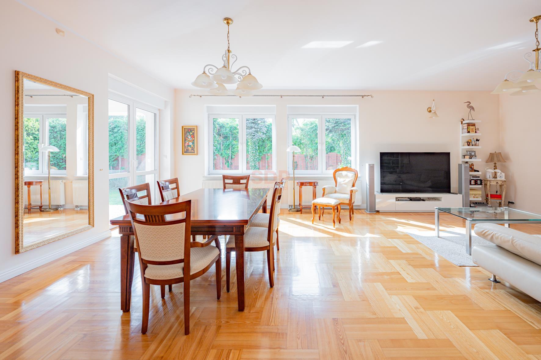 O walorach estetycznych tej nieruchomości decydują przede wszystkim znakomicie utrzymane drewniane parkiety.