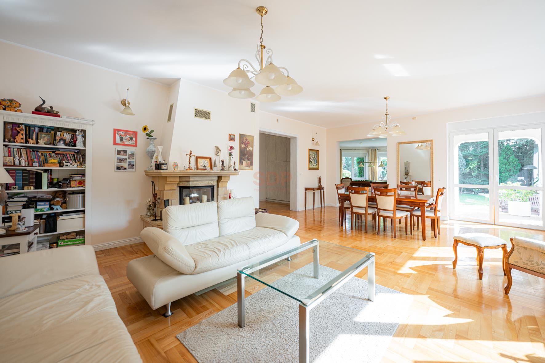 Przestronny i wygodny. Poczuciu przestrzeni sprzyjają wysokie stropy na parterze (prawie 3 m wysokości!). 87-metrowy salon to jeden z wielu atutów tej nieruchomości. W bryle budynku znajdują się niezbędne pomieszczenia gospodarcze oraz jednostanowiskowy garaż. Na podjeździe mogą parkować jeszcze 3 samochody.