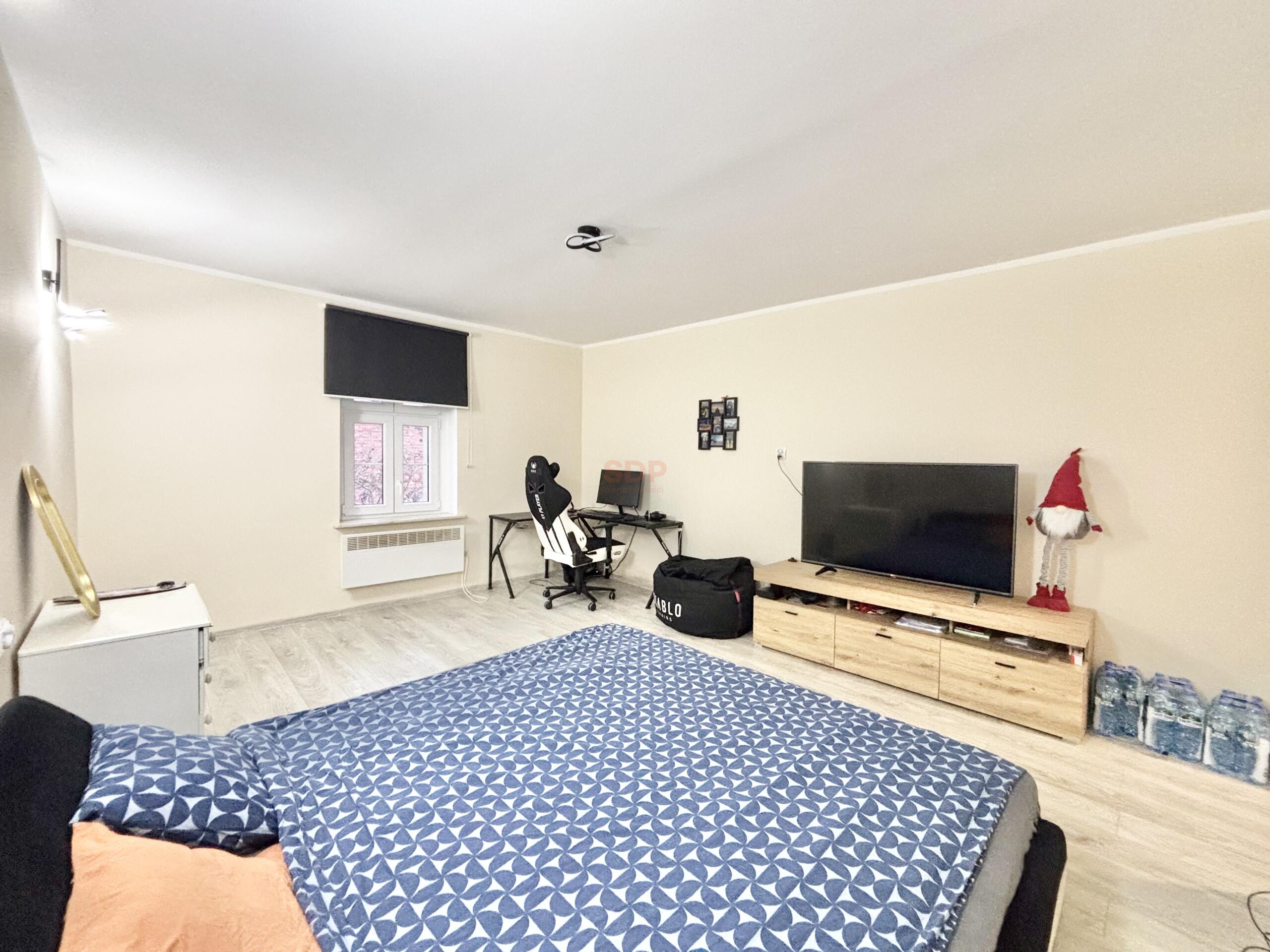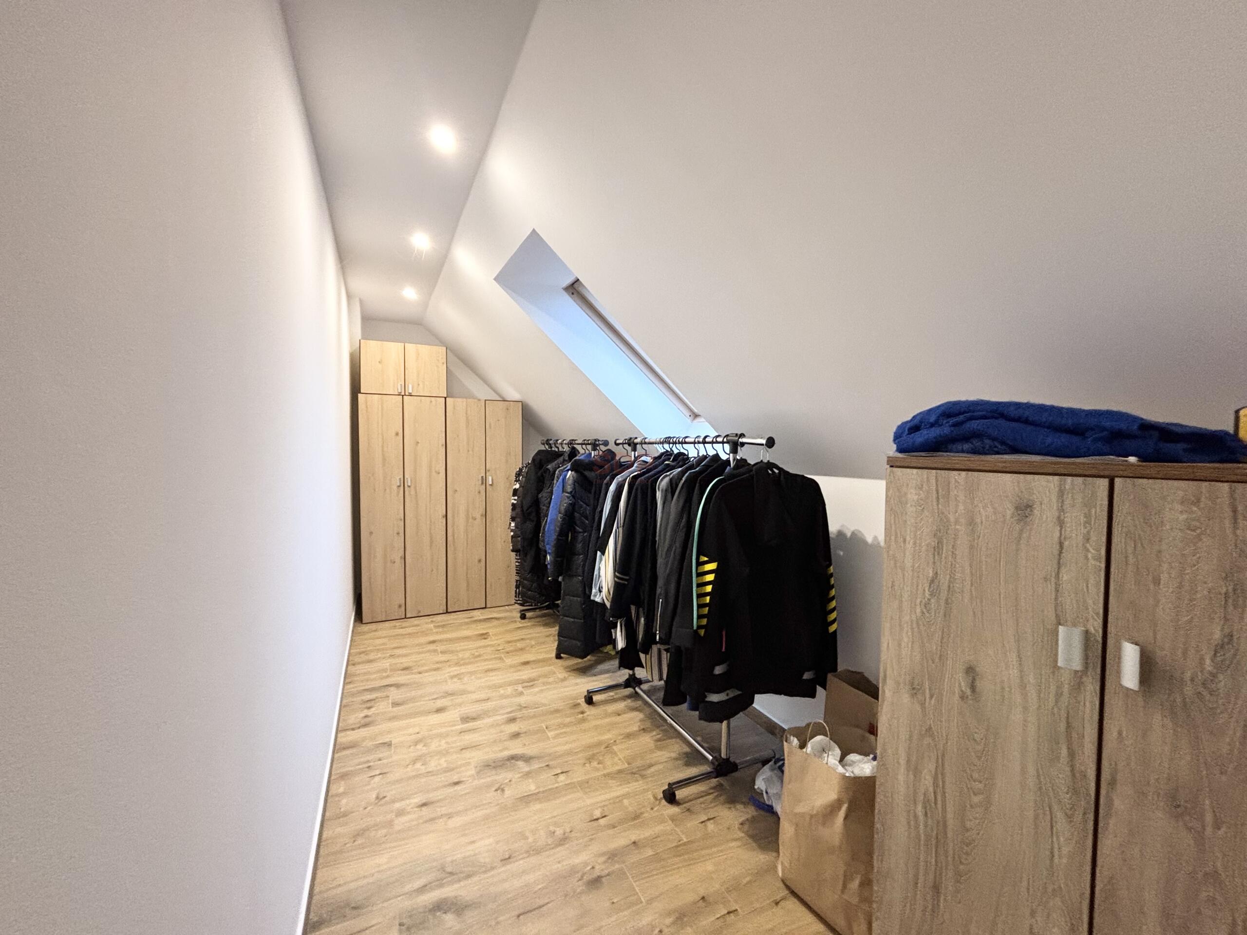 W pokoju z dostępem do garderoby aktualnie, są dociągnięte przyłączą wodne. Można zrobić dodatkowy aneks kuchenny.