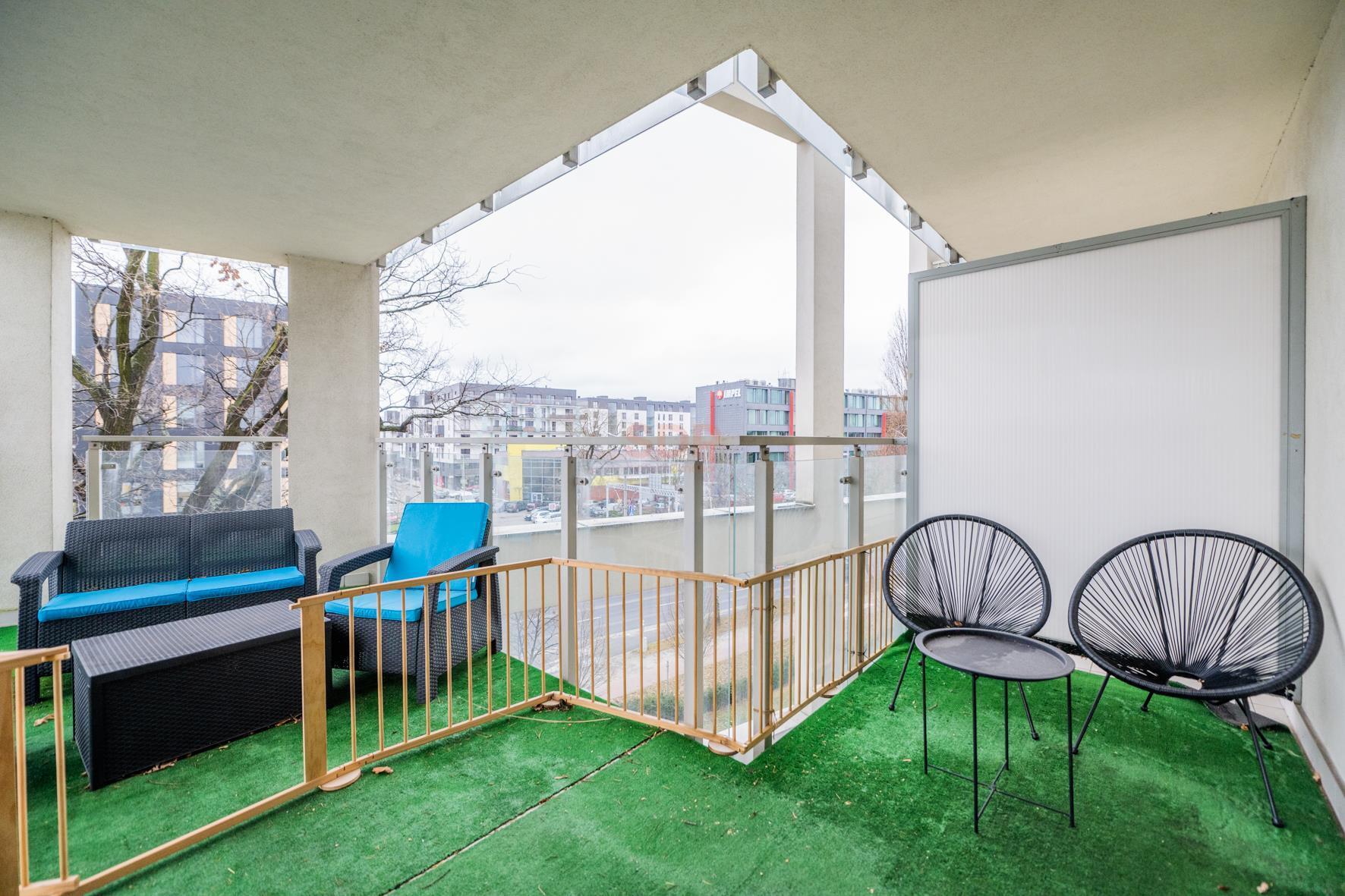 Nowoczesny 3-pokojowy apartament o powierzchni 70,33 m2 z dużym tarasem 32 m2, klimatyzacją oraz miejscem postojowym w garażu podziemnym. Wysoki standard wykończenia, pełne umeblowanie i świetna lokalizacja idealne także dla pracowników z Korei.