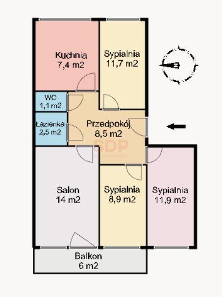 – pokój 11,9 m2