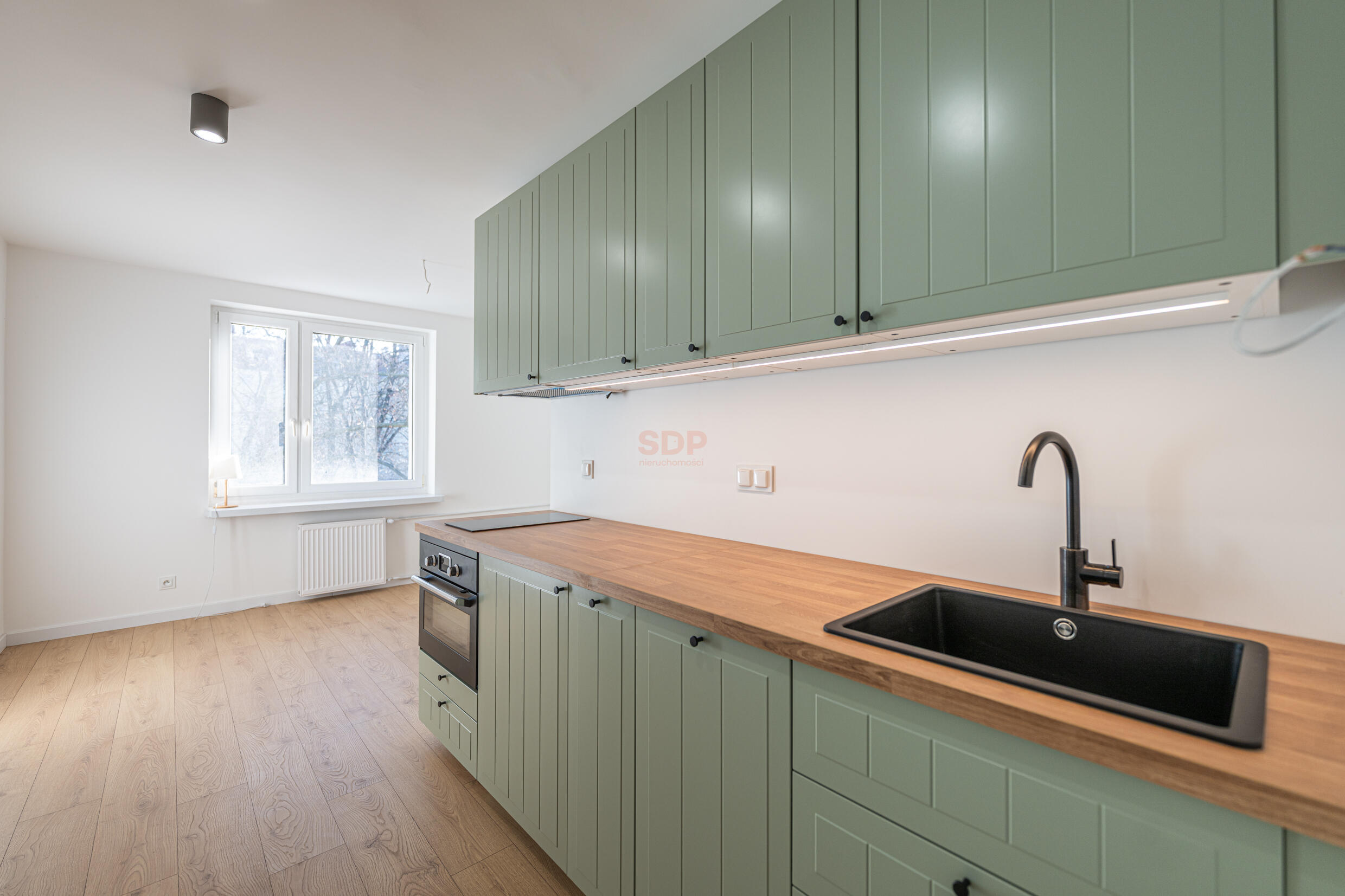 – Pełne wyposażenie: nowe meble kuchenne w zabudowie z piekarnikiem, zmywarką i lodówką