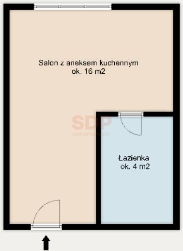 – Pokój dzienny z aneksem kuchennym – około 16 m2